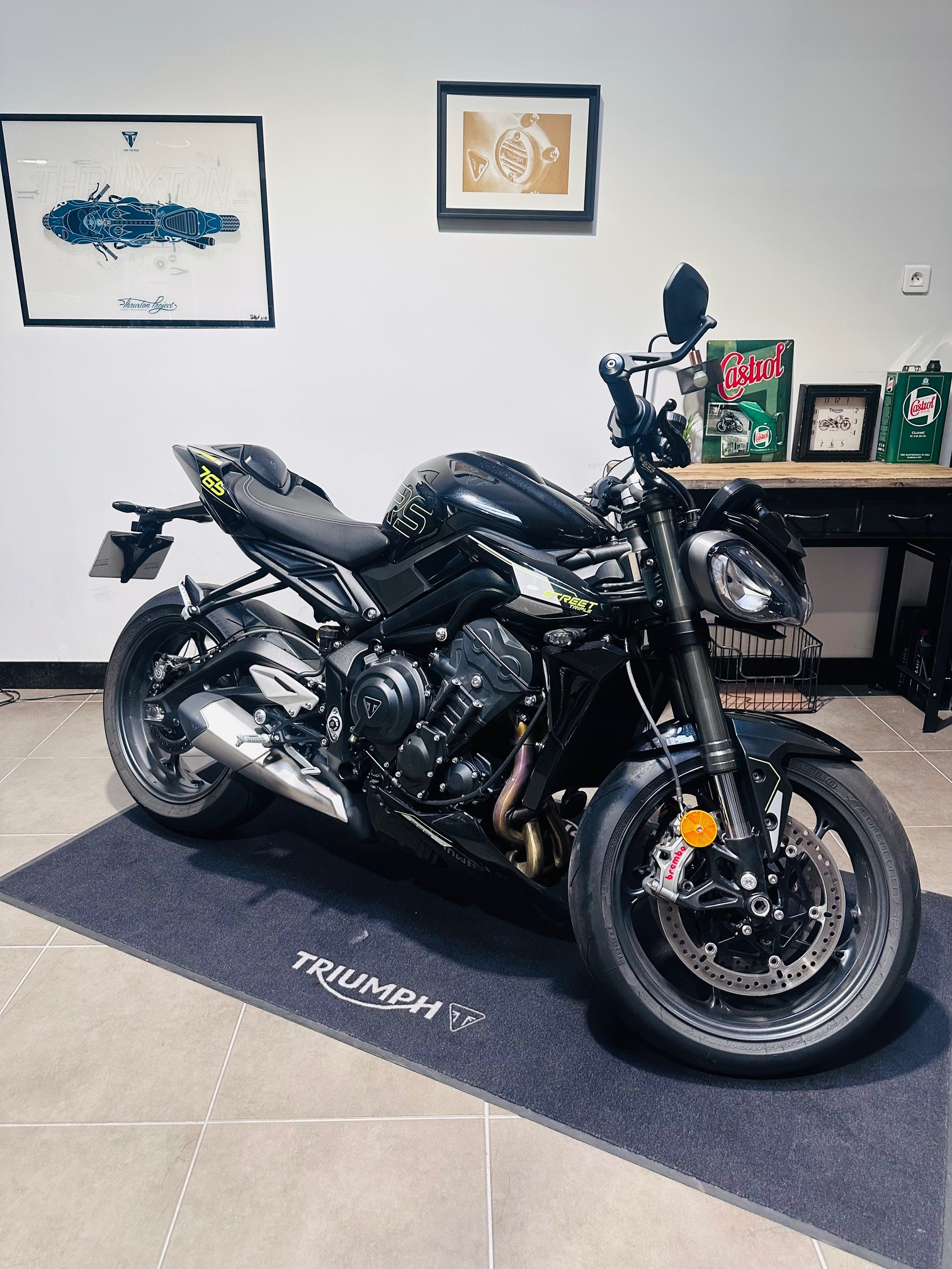 STREET TRIPLE RS, Phantom black, 1ère mise en circulation le 14/02/2025, garantie constructeur + assistance Triumph jusqu'au 14/02/2027.